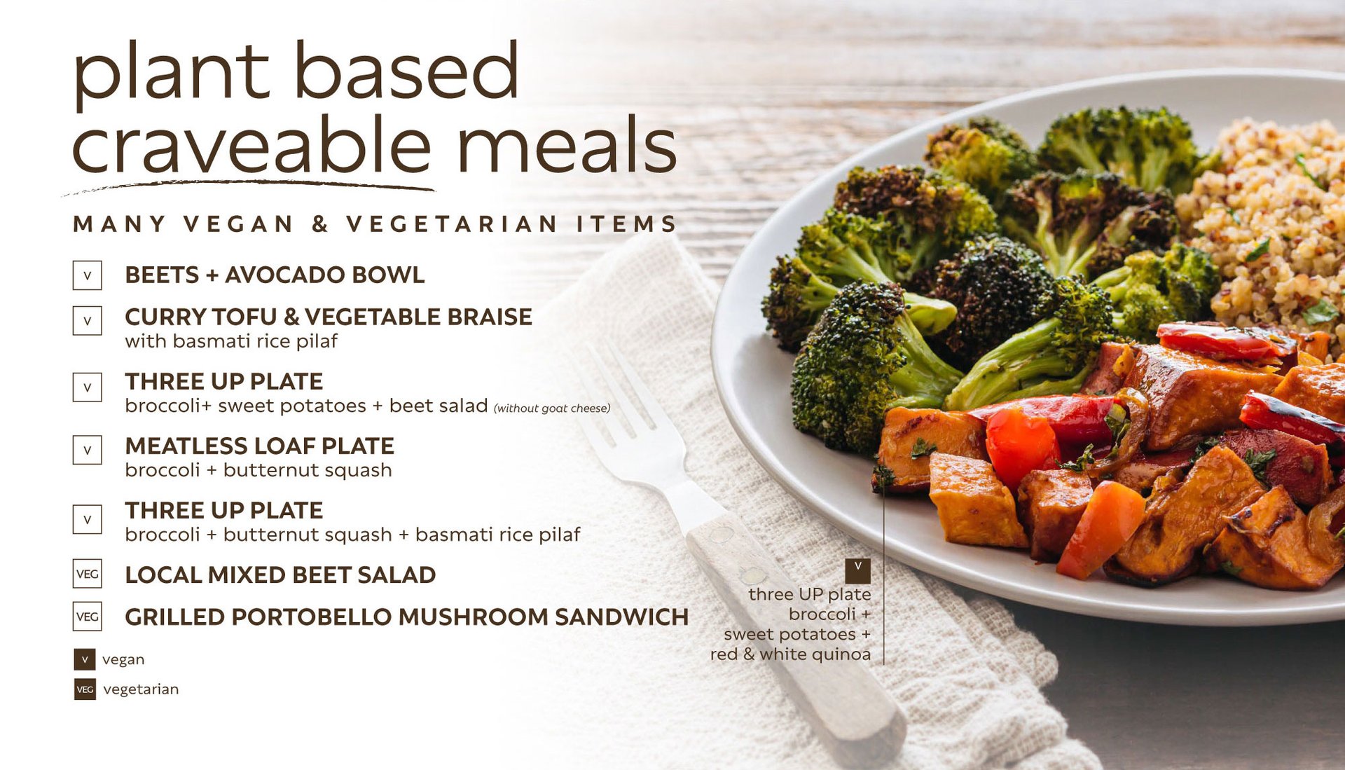For quick, plant-friendly but not fully vegan menus, Urban Plates or sweetgreen are solid.